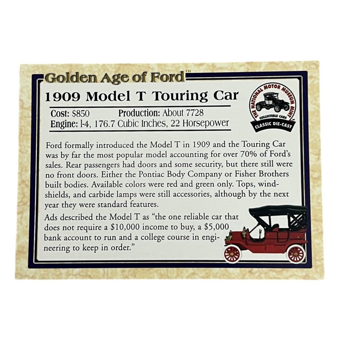 1909 Ford Model T Touring Car 1/32 Scale Diecast NMMM Red Black w/ Info Card