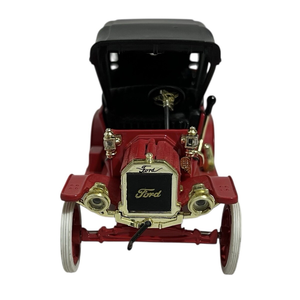 Classic 1909 Ford Model T Touring Car in bright red with ornate brass details and period-correct styling ? great display piece for Ford collectors or vintage diecast fans.
