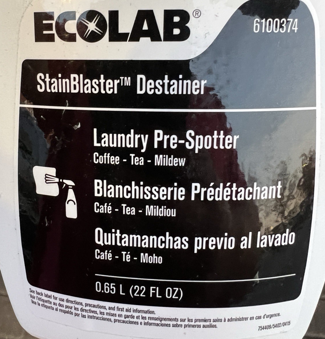 4 Bottles Ecolab 6100374 Stain Blaster Destainer Laundry Pre-Spotter