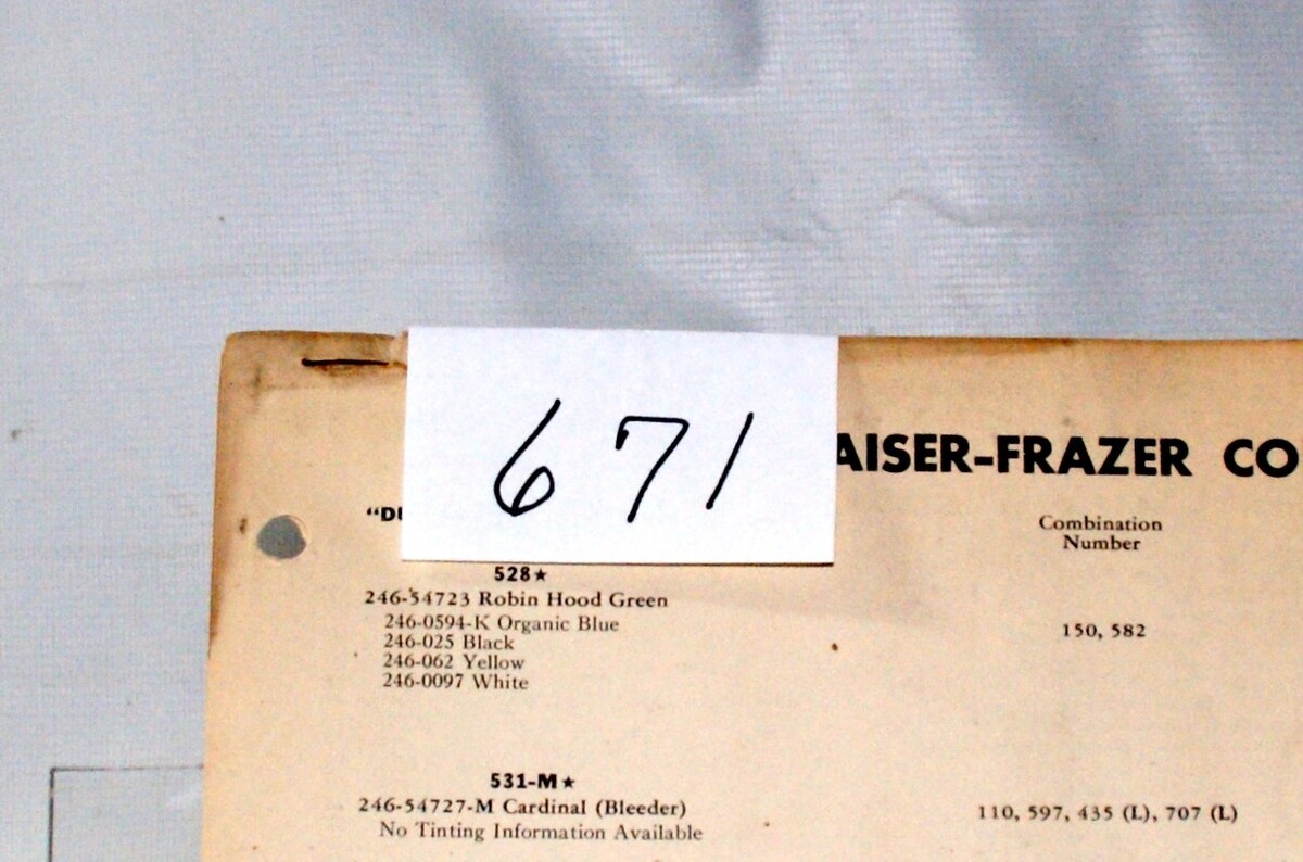1953 Hudson Paint Color Chips/48-52 Color Numbers 672