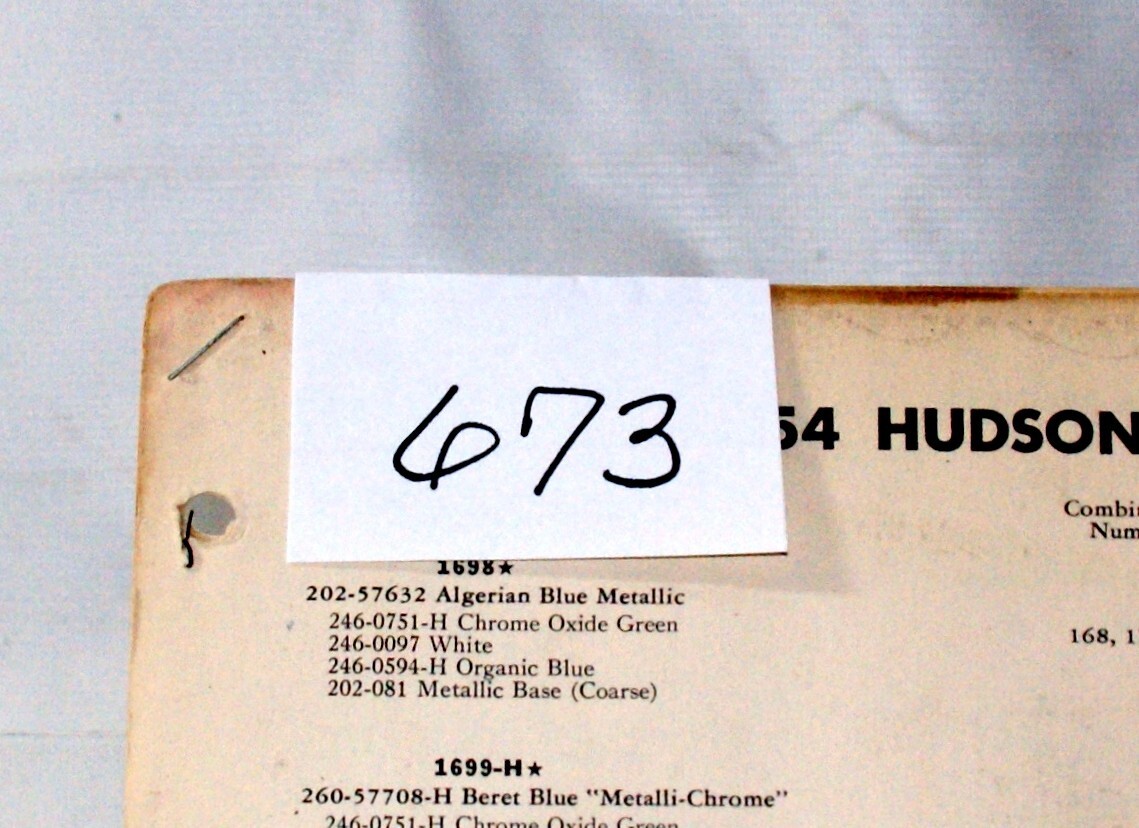 1954 Hudson Paint Color Chips/50-53 Color Numbers 673