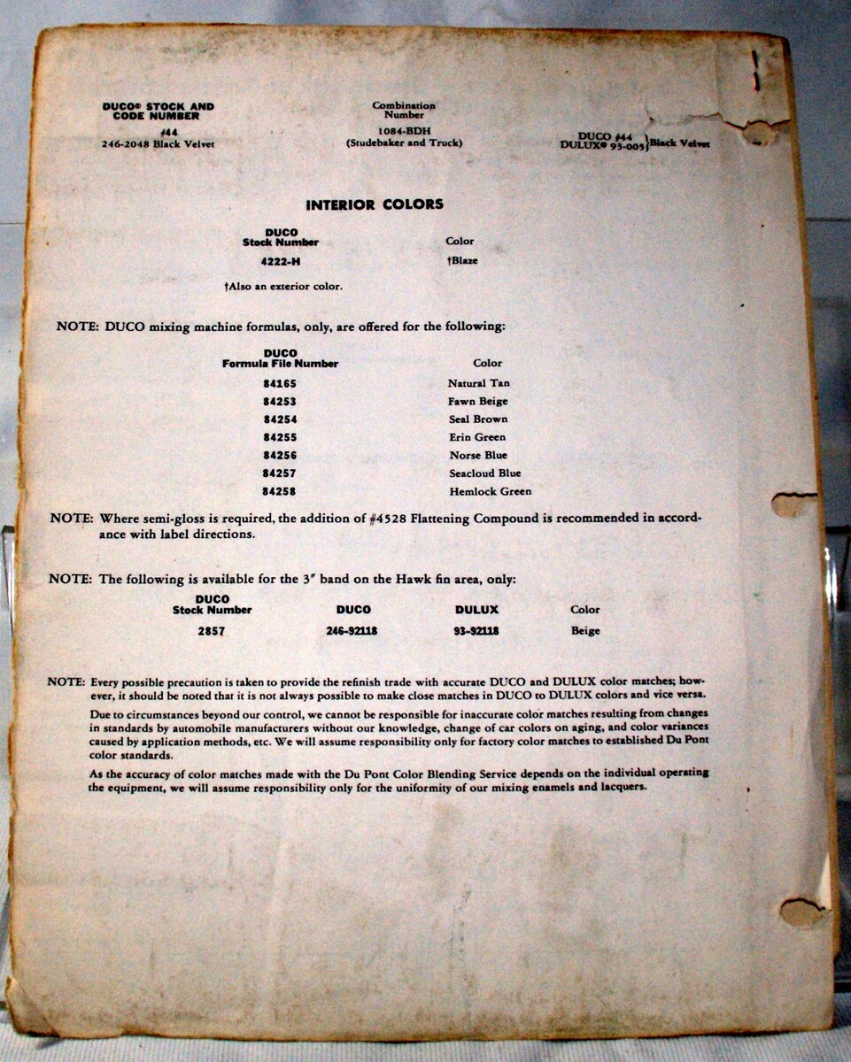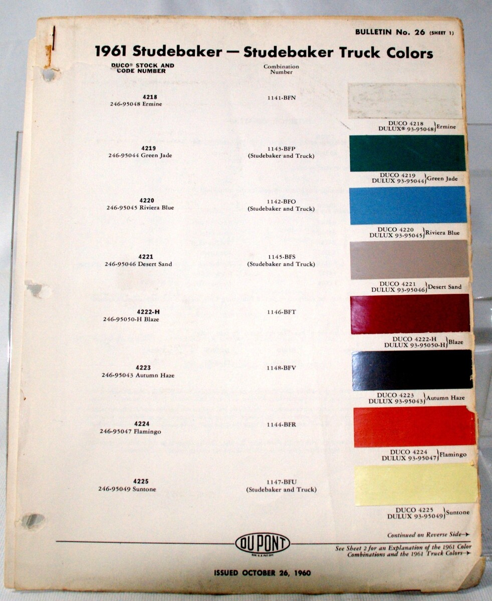 1961 Studebaker-Studebaker Truck Paint Color Samples 674