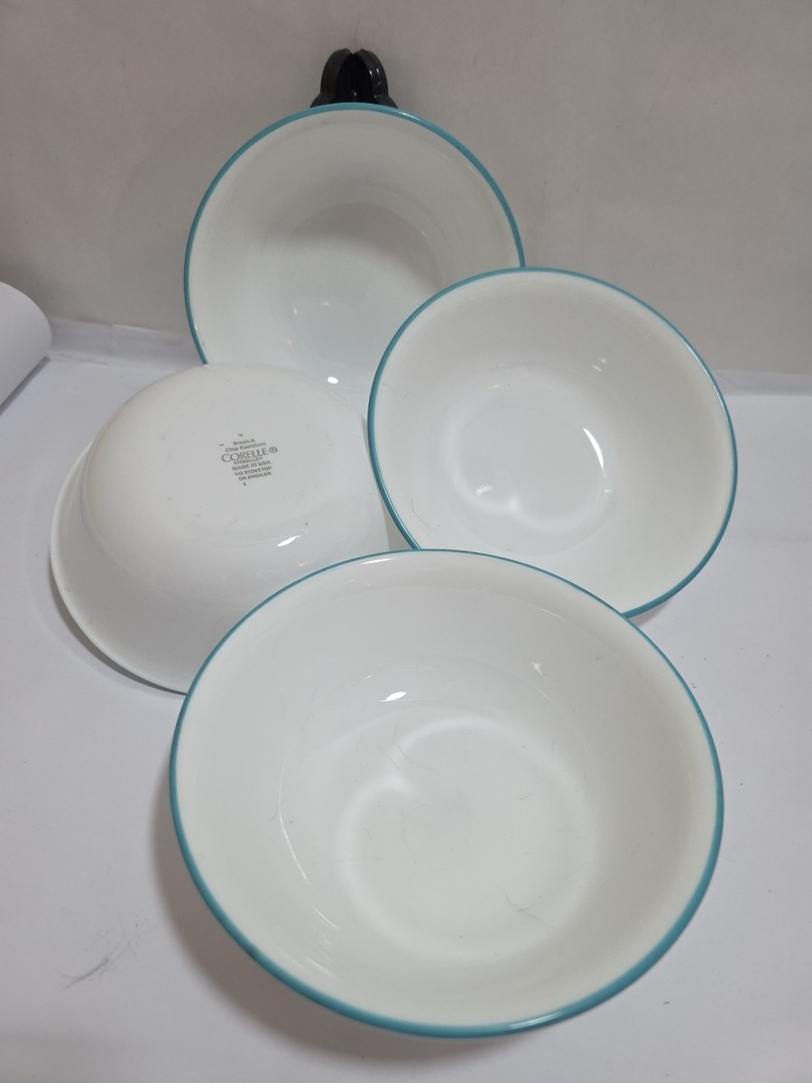 Corelle Vitrelle Turquoise Rim South Beach 6.25” Soup Cereal Bowls Set of 4