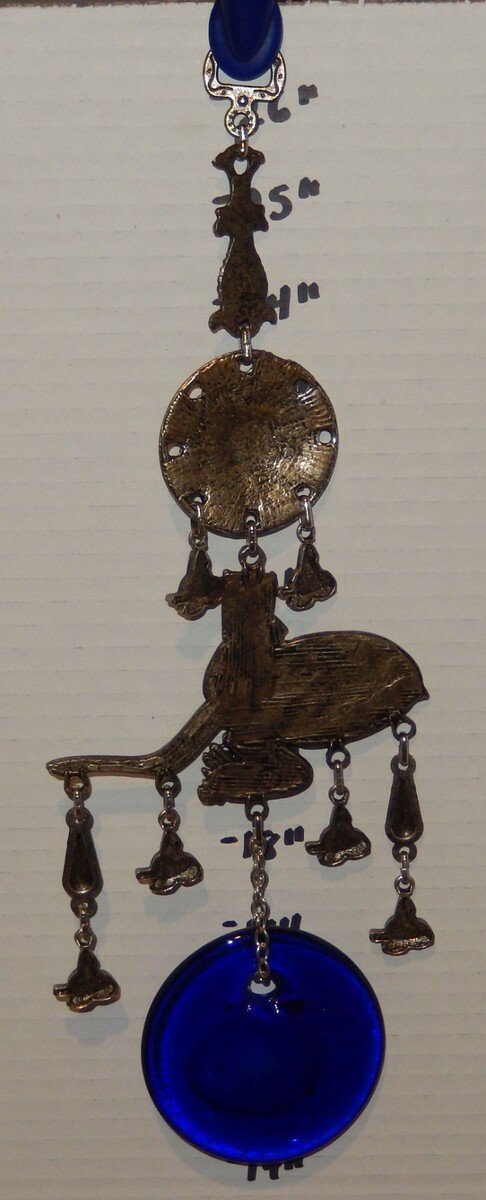 Decorative Metalwork: The charm is accented with detailed filigree metalwork and cascading teardrop/bell-shaped dangles that create movement and visual interest.