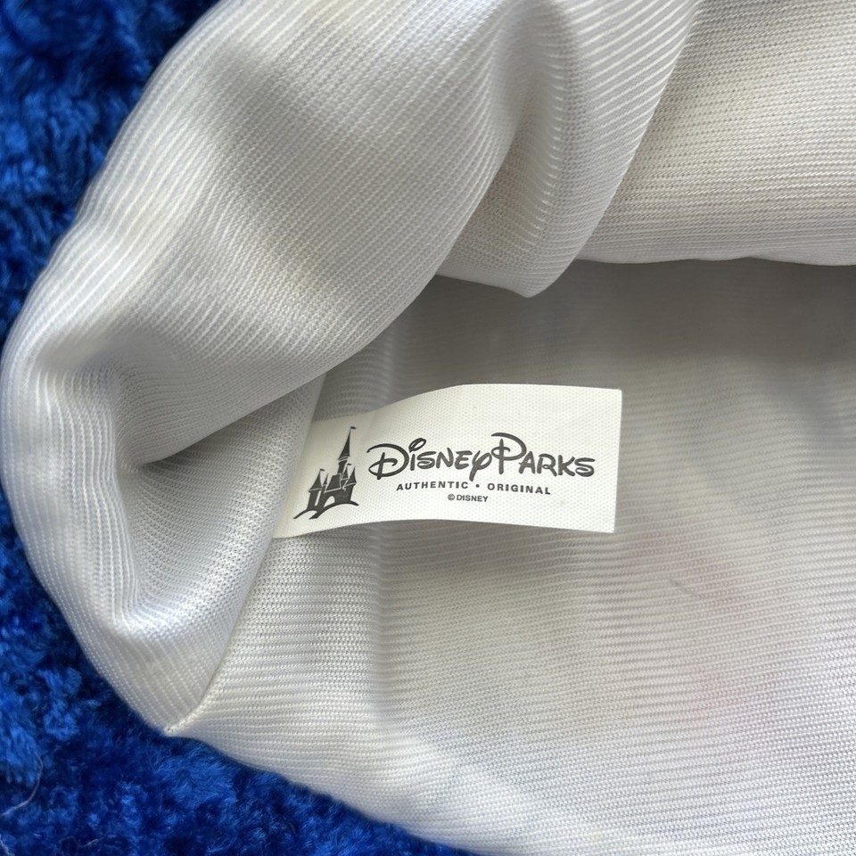 This Disney Parks Mickey Mouse Fantasia Hat is a pre-owned collectible featuring ears from the iconic character of Mickey Mouse. The hat is designed in a vibrant blue color, perfect for fans of the Fantasia theme. Suitable for adults, this one size fits all hat is a great addition to any Disneyana collection. The contemporary design makes it a desirable item for collectors who appreciate Disney merchandise from the 1968-Now time period.
