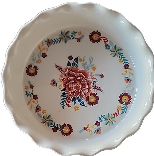 Pioneer Woman ~ KEEPSAKE FLORAL ~ 8" Stoneware ~ Pie Plate ~ Ruffled Edge