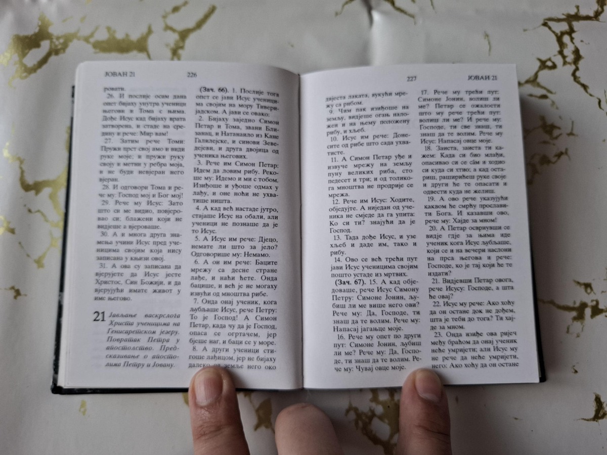 Serbian Orthodox New Testament with small dimensions that are suitable for carrying in your pocket when traveling. Of course, it can be a very nice gift for your friend or relative. The book is used, but in perfect condition with no missing or damaged pages. The covers are of good quality.