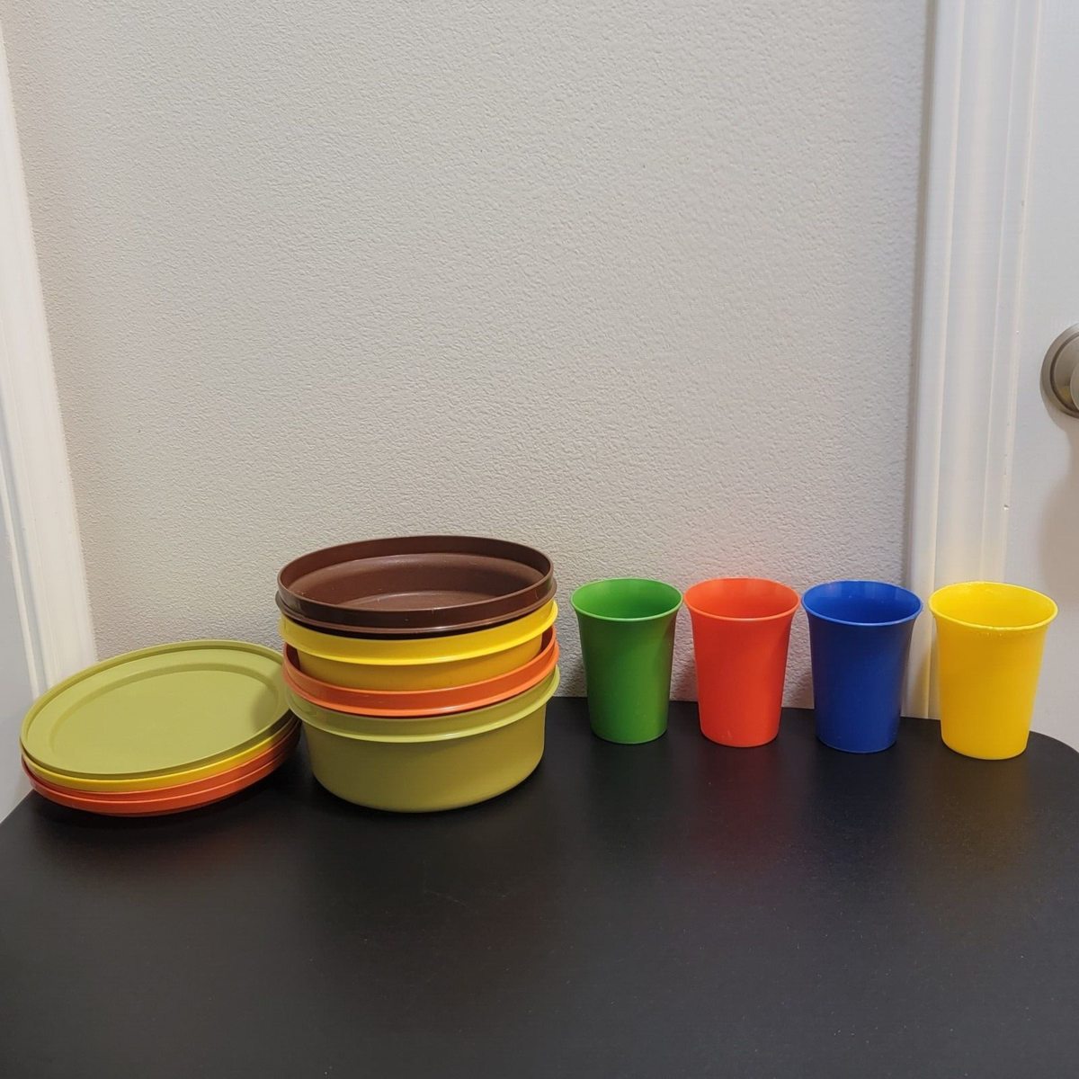 Vintage Tupperware Cups Bowls Lids Storage Container Mickey Cup Set
