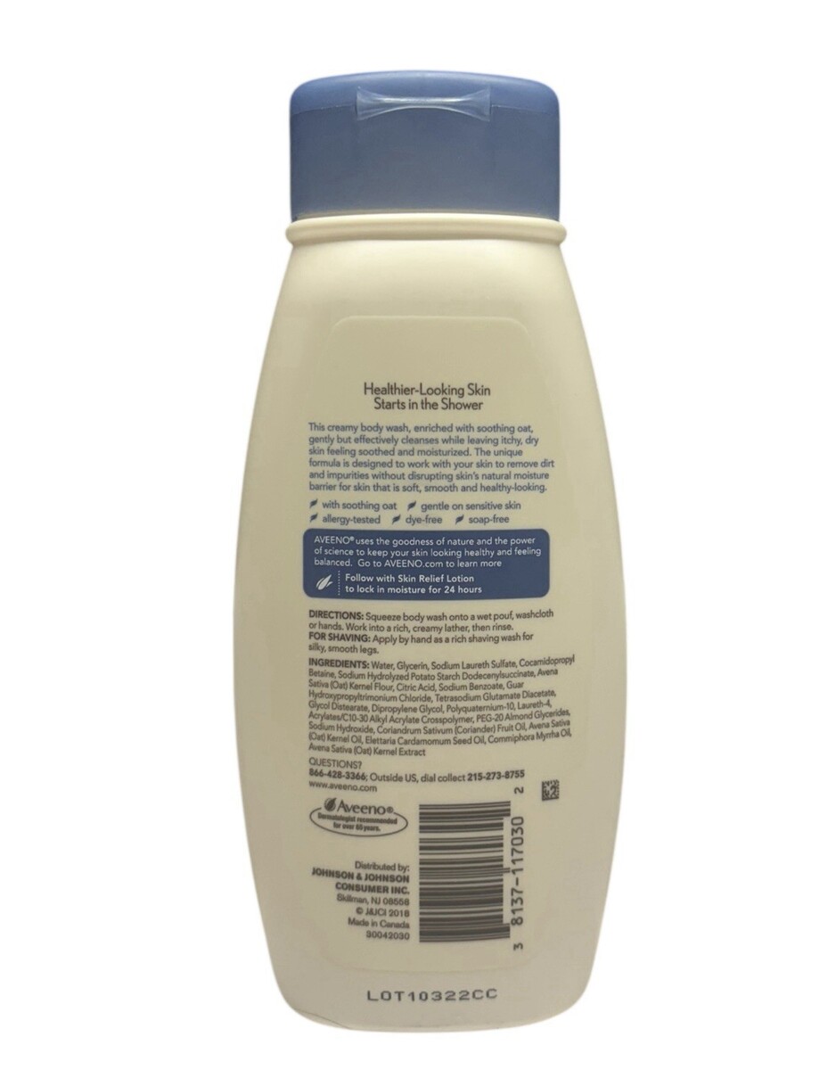 ORIGINAL Aveeno Skin Relief Body Wash Soothes Itchy Dry Skin Fragrance Free 18oz.