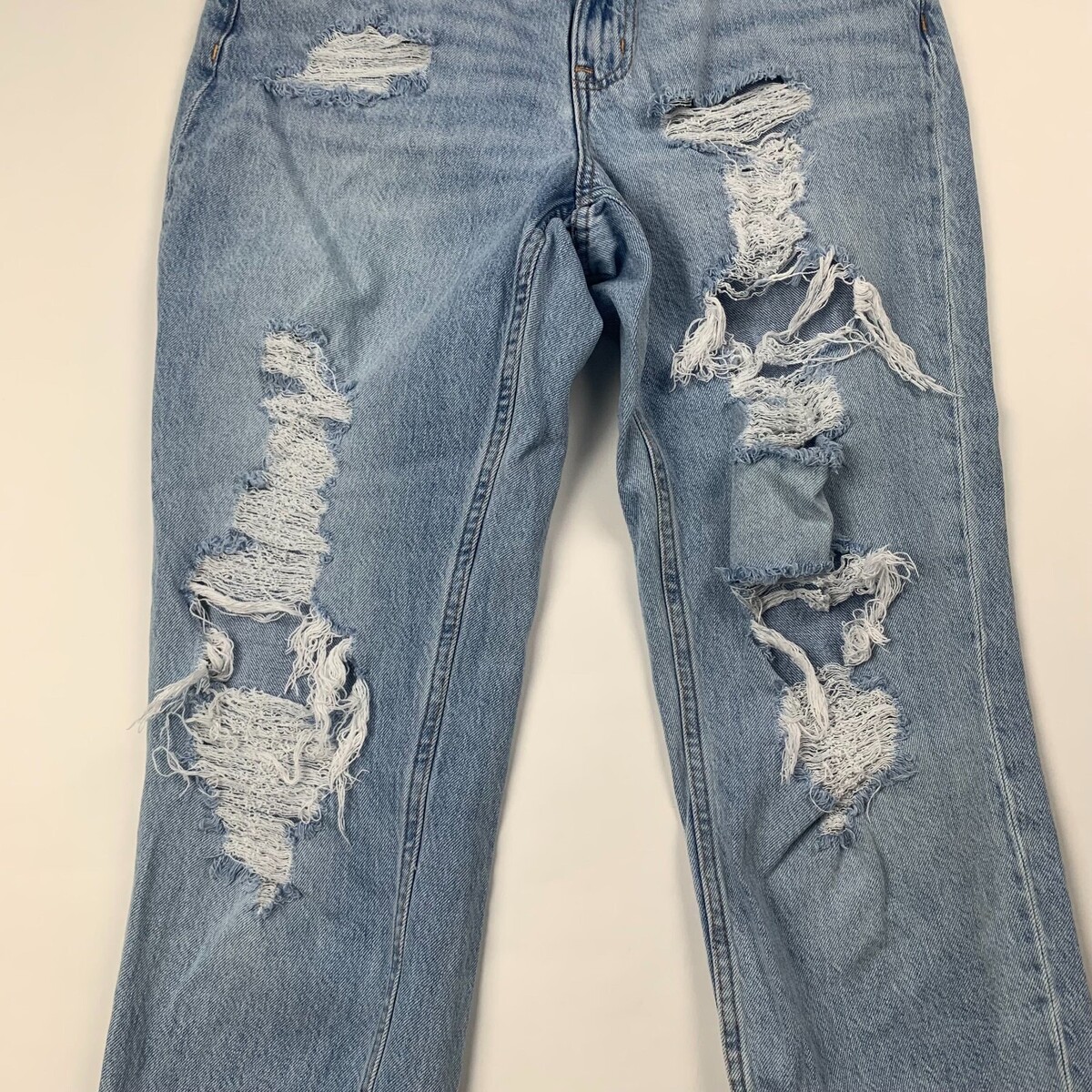 Aeropostale Womens Mom Jeans Size 8 Blue Light Wash Distressed Destroyed Cotton