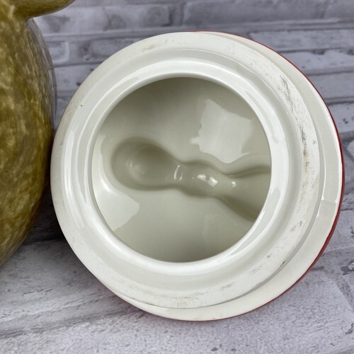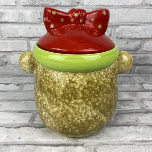 Real Home Sock Monkey Cooke Jar Canister Container Red Nose Bow