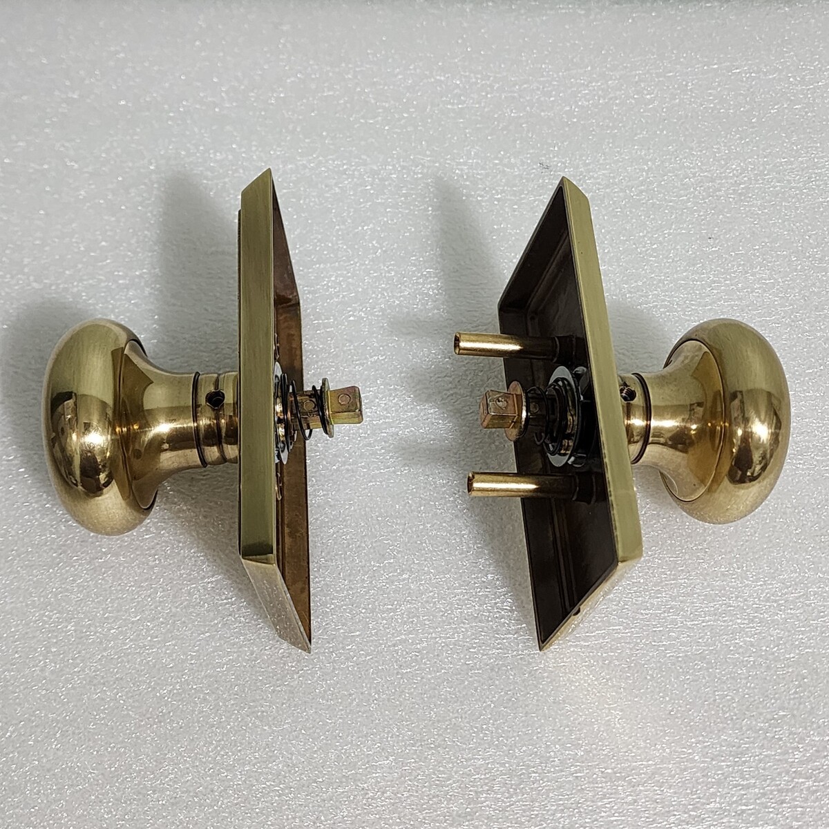 Providence Door Set with Round Brass Knobs Privacy in Antique Brass. Doorsets.