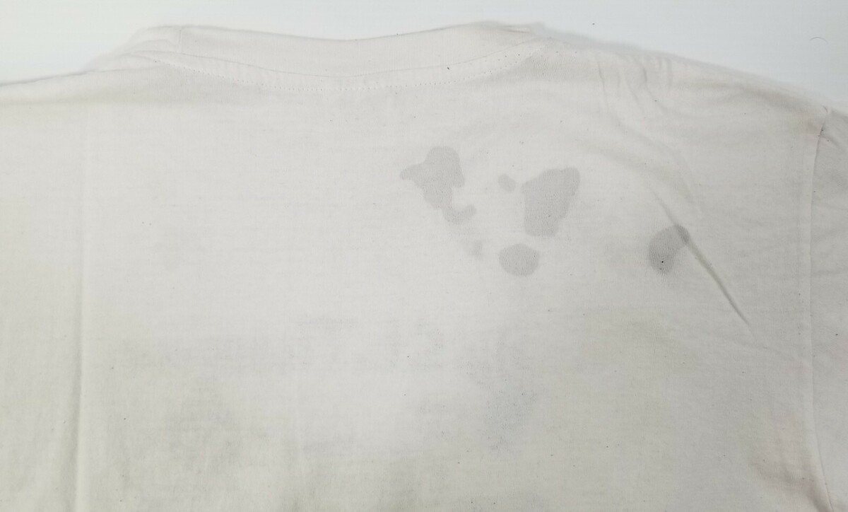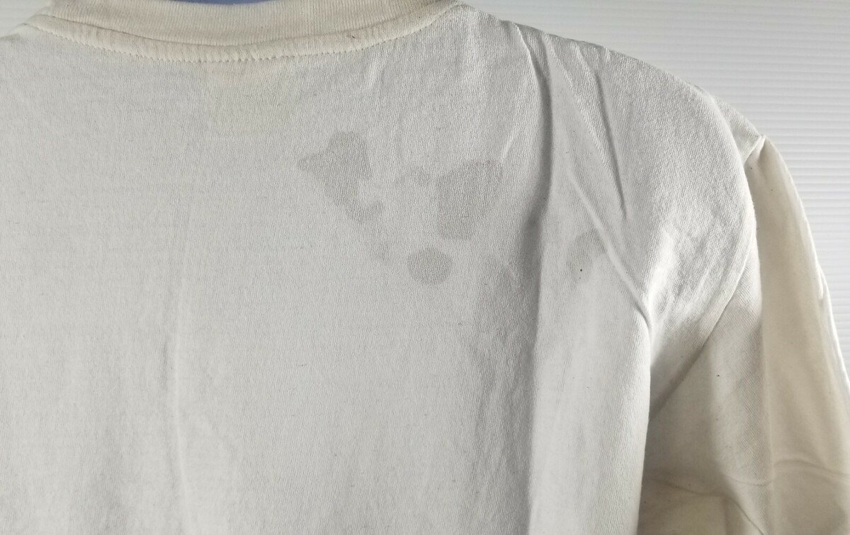 Shirt is in vintage, used condition with signs of age, use and storage including some staining, fabric piling and discoloration. There is some storage staining on top right chest and rear shoulder.