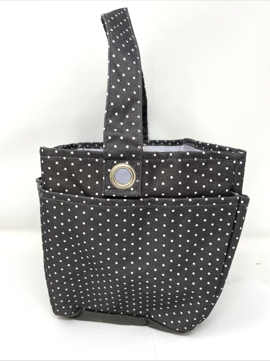 Thirty-One Small Utility Tote Black w/ White Polka Dots