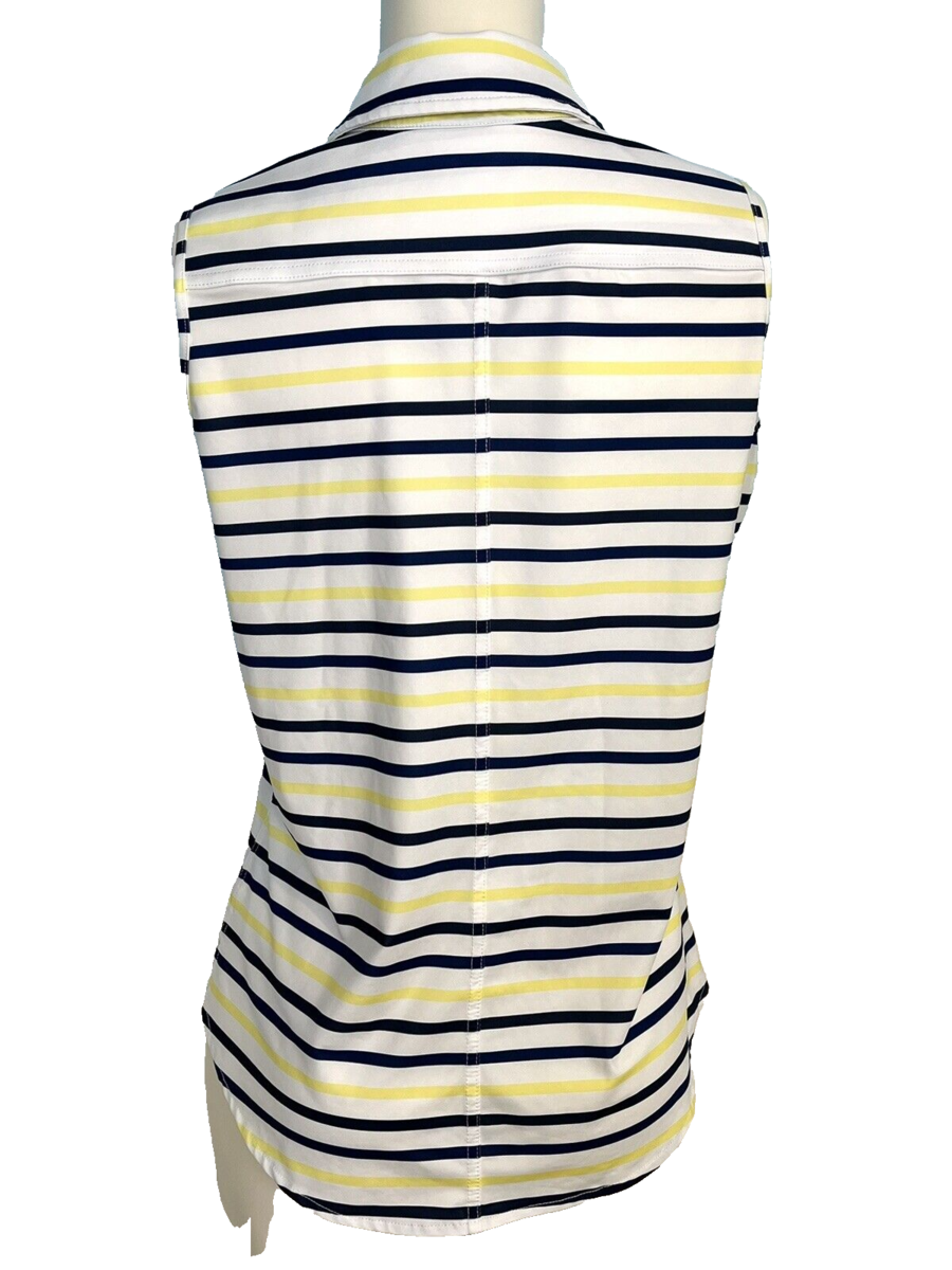 Belyn Key White, Blue, Yellow Striped Sleeveless Collared Golf Shirt Size S