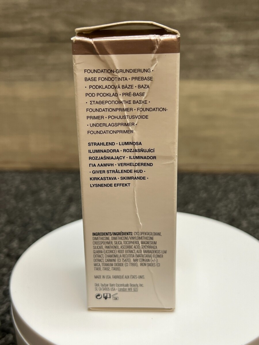 The item for sale is a new BareMinerals Prime Time Foundation Primer Brightening 1 oz 30 ml. Comes in original box. The box has some wear.