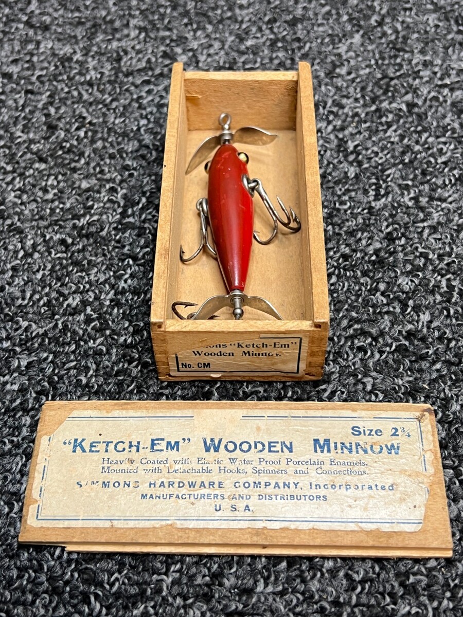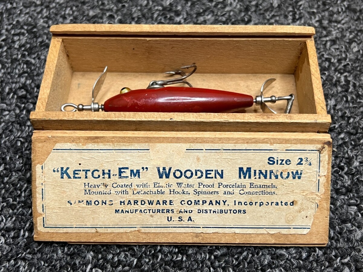 Simmons Ketch-Em Wooden Minnow 2-3/4 Lure in Original Wooden Box - Very Rare!