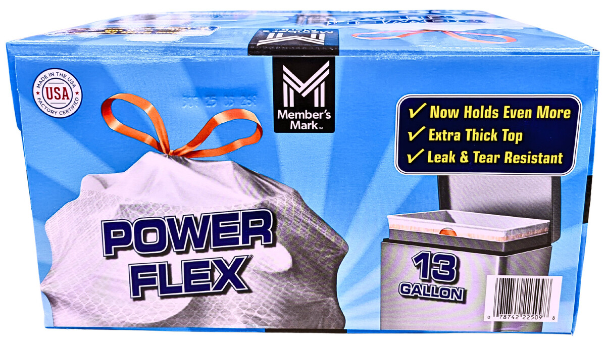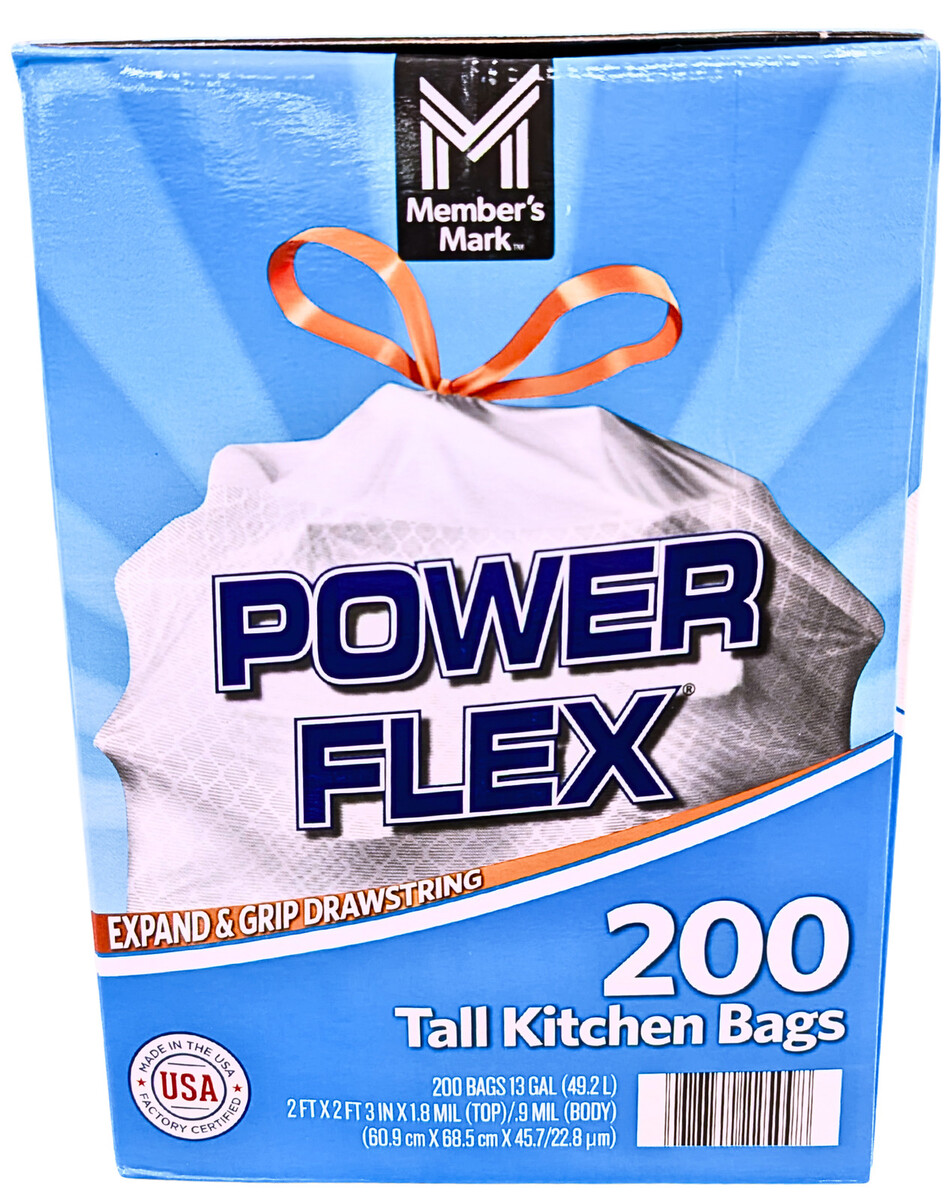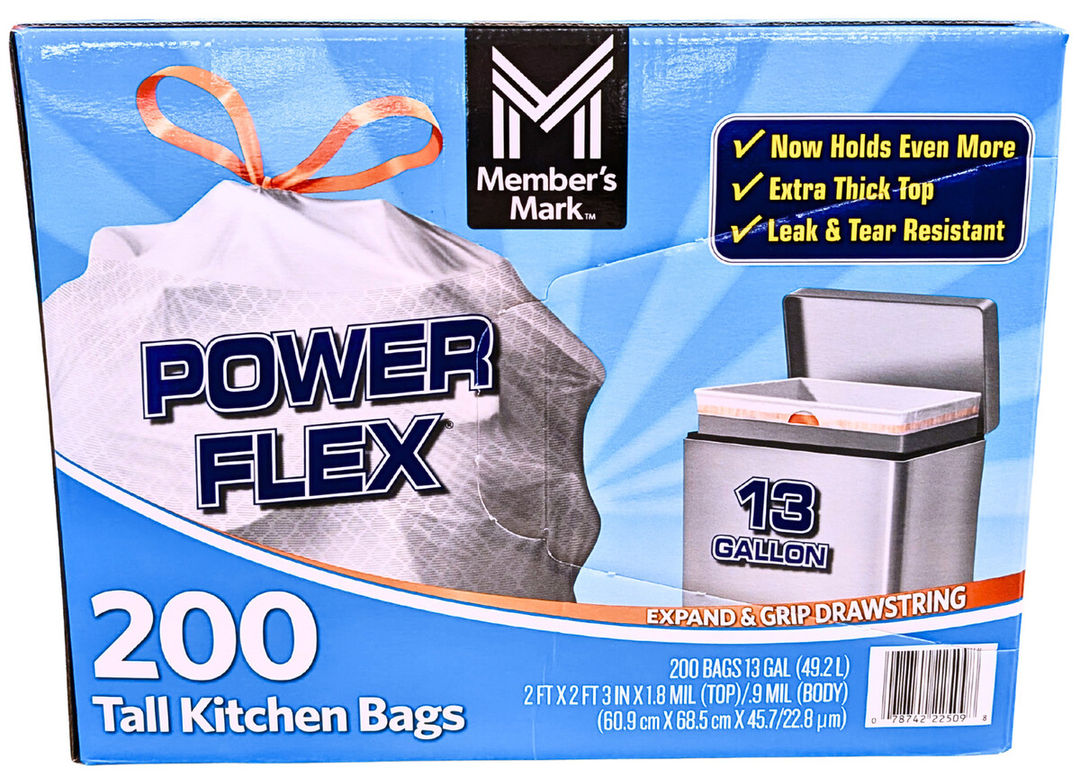 Member's Mark Power Flex 13-Gallon Tall Kitchen Trash Bags 200 Count