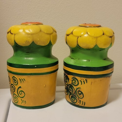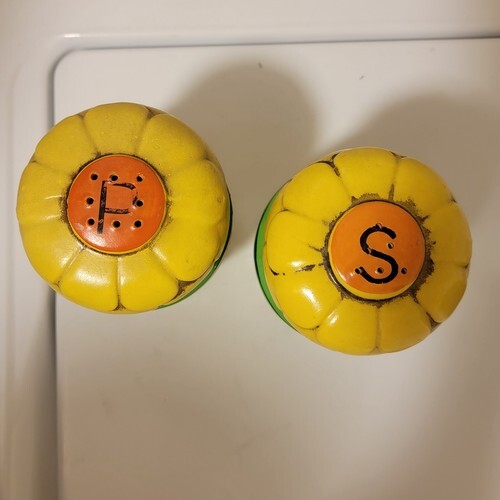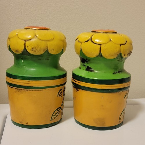 Vintage Large 6" Salt & Pepper Shakers Flowers MCM Yellow Green Japan