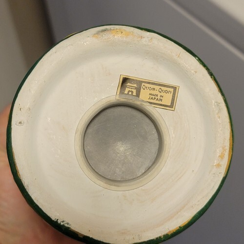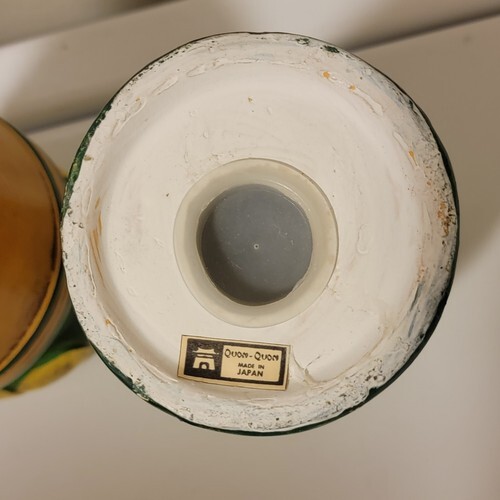 Vintage Quon Quon Large Green / Yellow Groovy MCM Flower Salt Pepper Shakers - Made in Japan