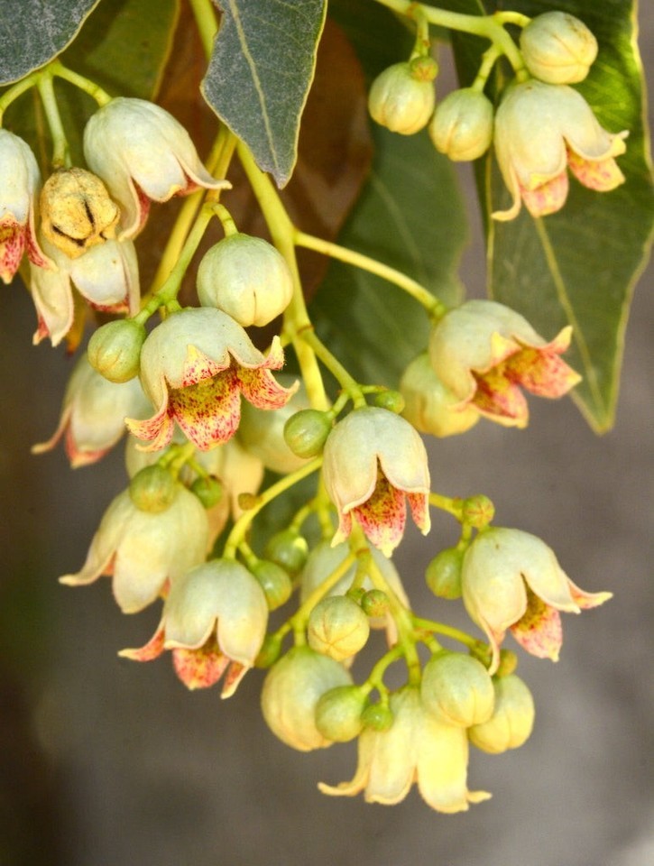 Flowers: During the warmer months, usually in summer, the Queensland bottle tree produces clusters of bell-shaped flowers. These flowers are typically cream-colored and have a waxy texture. They often attract pollinators such as bees and birds.