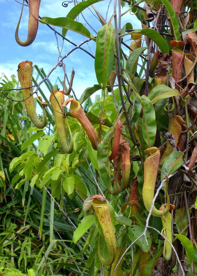 Diet: Like other pitcher plants, N. mirabilis captures insects and other small prey using a digestive enzyme secreted in the pitcher fluid. The slippery interior and the nectar produced by the plant lure insects, which then fall into the fluid and are digested.