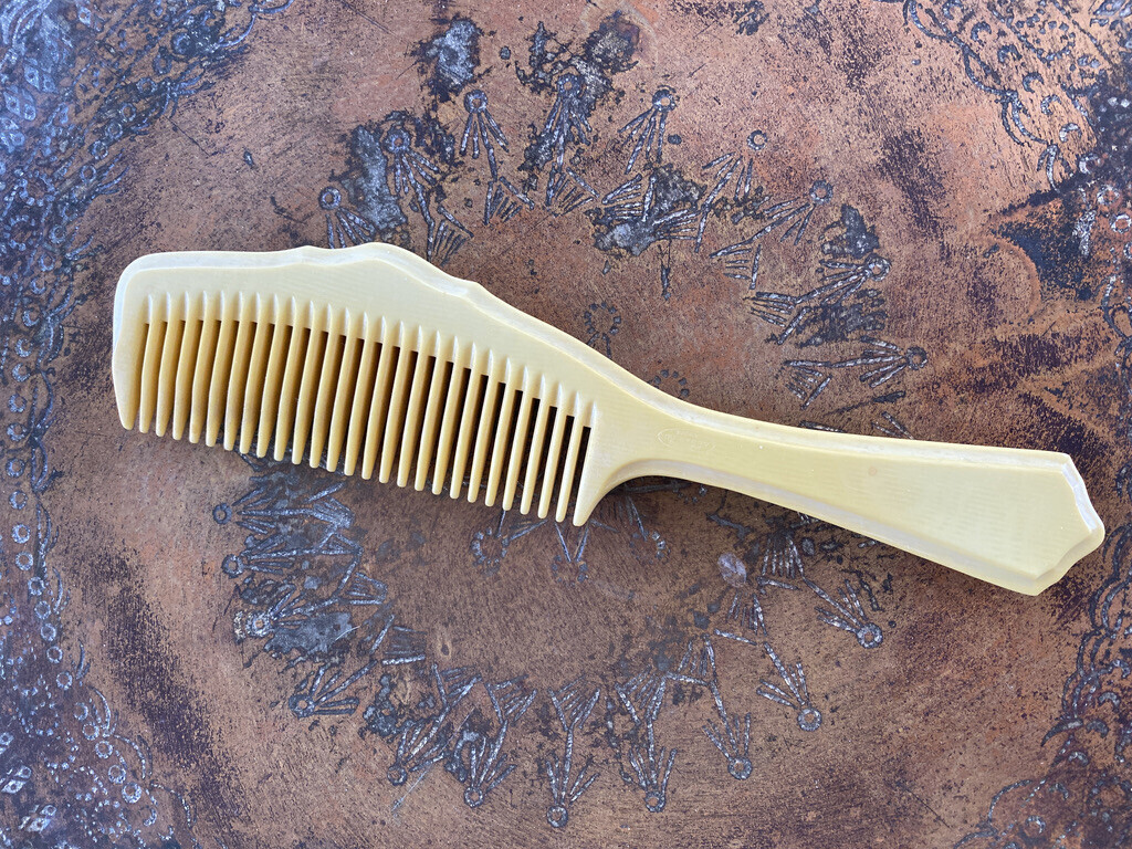 VTG FRENCH IVORY PYRALIN DUBARRY CELLULOID DRESSER VANITY PARTIAL SET+ COMB