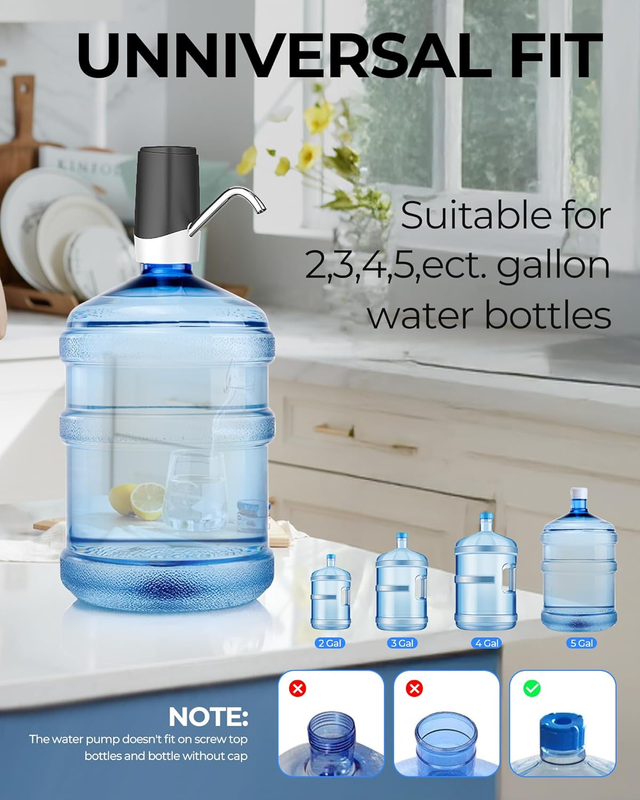 PORTABLE DESIGN: The water bottle pump has a portable design, easy to carry and move, suitable for use at home, office, camping or traveling.