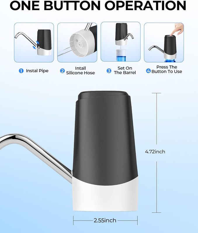 ONE BUTTON DRINKING WATER PUMP: the gallon water dispenser is easy to operate, just press the button to automatically suck water, saving time and labor.