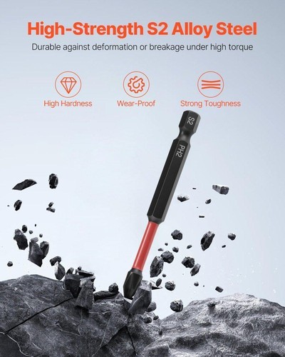 Hardened S2 alloy steel enhances torque capabilities, absorbing impact forces when used with an impact screwdriver. This avoids bits breakage and allows you to tackle rusted, stripped, or broken screws with ease, making high-intensity screwdriving jobs effortless.