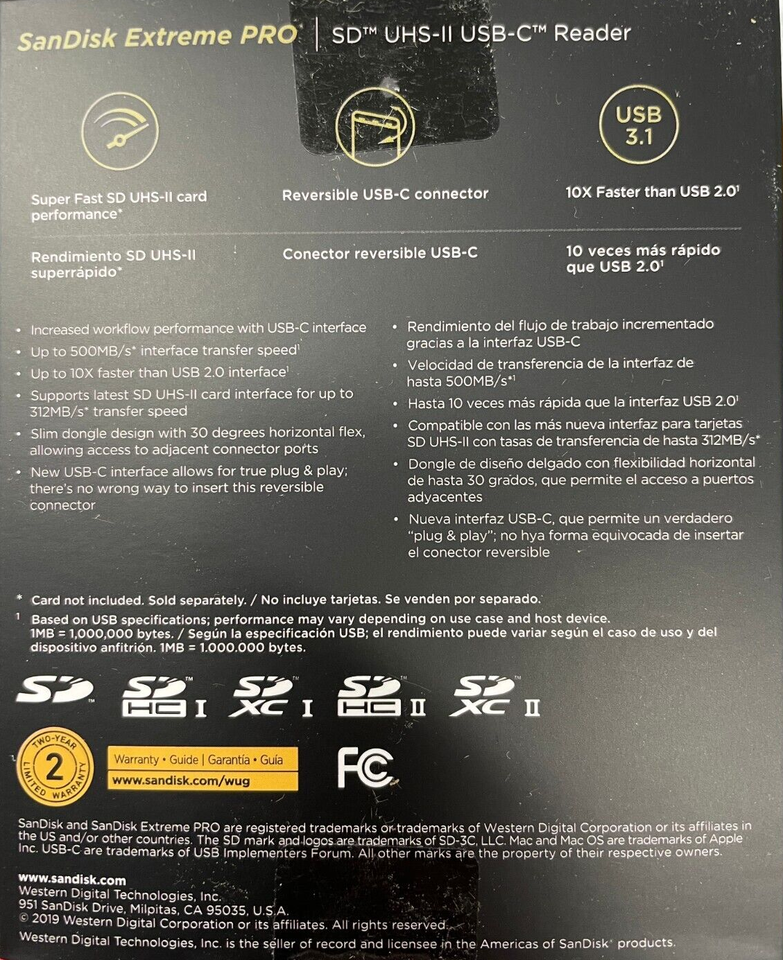 PRO SD UHS-II Card USB-C Reader/Writer works with UHS-II cards and is