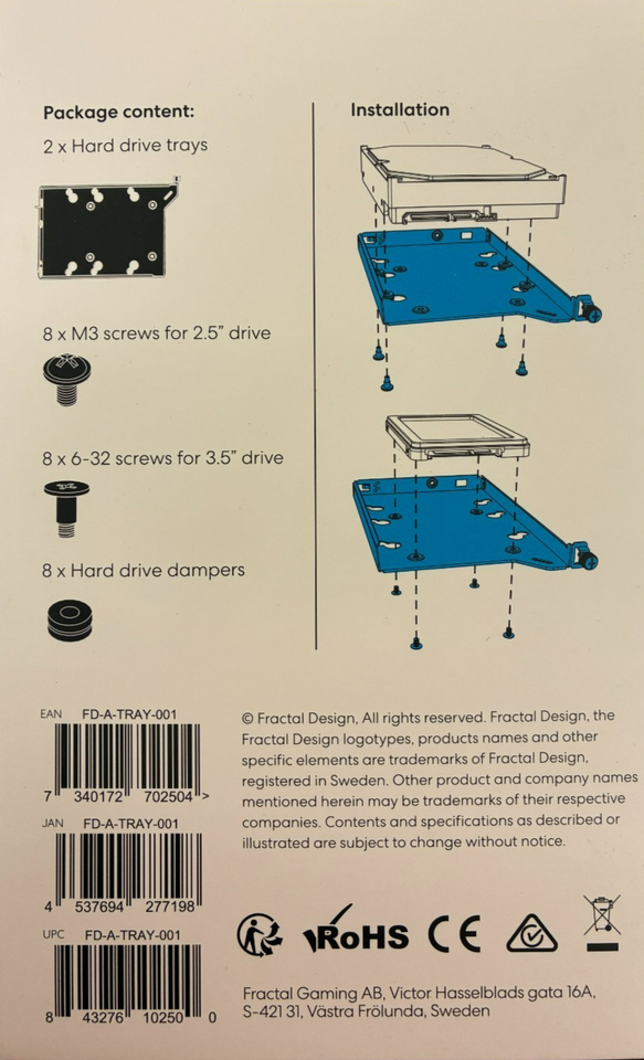 Fractal Design FD-A-TRAY-001 HDD Drive Tray Kit - Type-B for Define 7 Series and