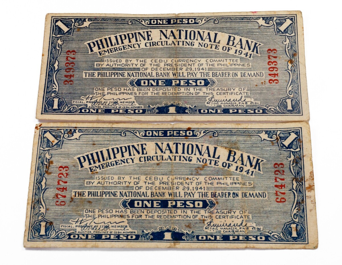 1941 Banco Nacional de Filipinas - Billetes de 1 peso de Cebú, Lote de 3 P-S215