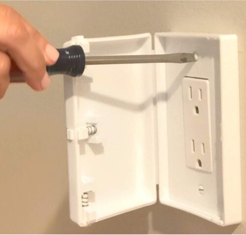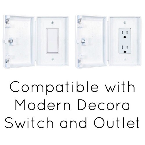 UNIQUE DESIGN ? Child resistant safety cover for existing modern ?decora? outlets or switches. Extremely durable patented hinged door clicks closed. To open, engage all 3 points on the outside edges at the same time. Easy for parents ? not for young children who have not developed the dexterity to push all 3 buttons in sync. Unique to the baby electrical safety market, this patented product deters children, toddlers and pets. Praised by parents of young children as well as those on the Autism Spectrum and persons with intellectual and behavioral challenges.
