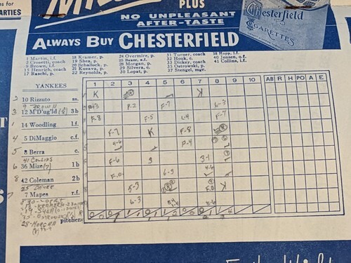 1951 Chicago Cubs Contre New York Yankees Stadium Programme Score Marqué MLB
