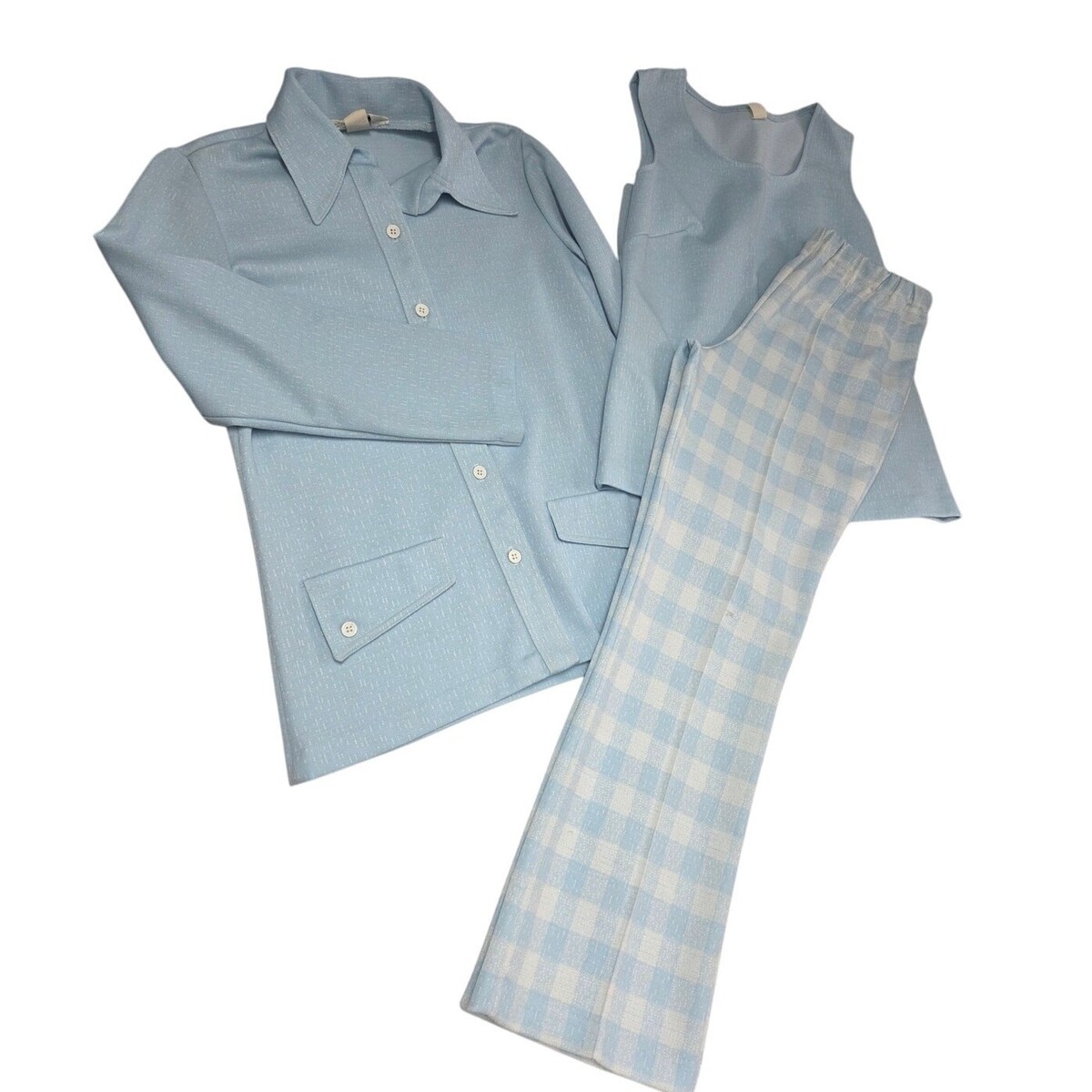 VTG 1970s Powder Blue 3-Piece Pant Set NPC Fashions Warren PA Mod Retro PantSuit