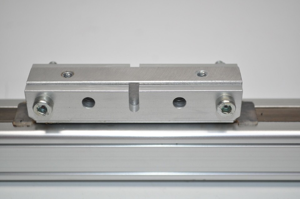 Looks to be in good condition but missing labels. I had two Barrington Automation SP-TS-2-10-AIR Pneumatic Slide Tables but one had bad bearings so I removed this part from it. The matching table is in another listing.