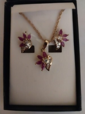 Genuine Ruby W/CZ Earring Clipped & Pendant and similar items