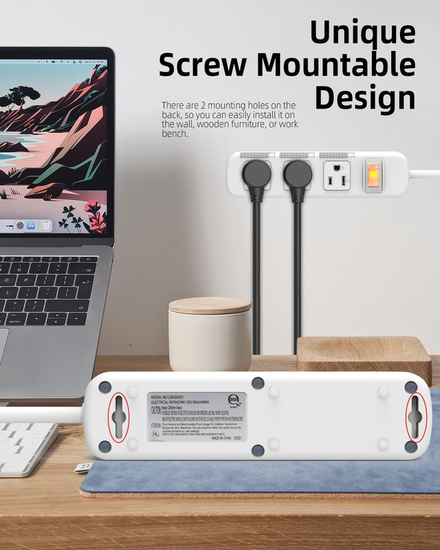 Mountable design and 3ft/0.91m extension cord can allow you install this power strip on various places. It's a Preeminent desk or wall usb charging station for phone, TV and more.