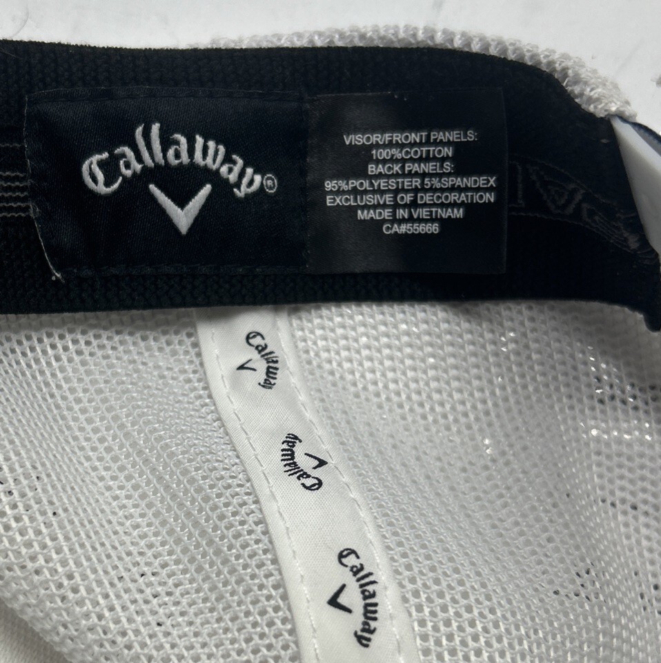 The Callaway Xspann CG Trucker Adjustable Snapback Mesh White Hat Golf Cap is a stylish and functional accessory for golf enthusiasts. Made of a blended fabric with a mesh back, this hat is perfect for outdoor activities and casual wear. The adjustable snapback ensures a comfortable fit, while the Callaway logo adds a touch of authenticity to your golfing attire. Whether you're hitting the links in the winter, summer, fall, or spring, this mesh back hat will keep you looking and feeling great. Thank you for your interest in our listing and please feel free to visit our store for more great deals.