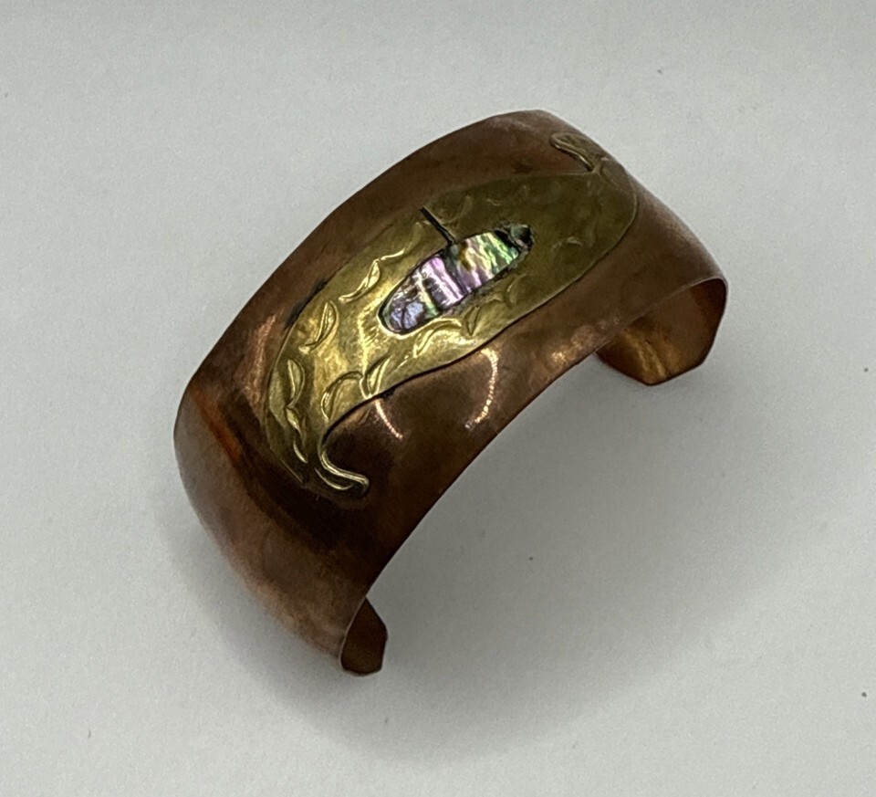 Vintage Cobre Mexico Copper and Abalone Mixed Metals Bracelet