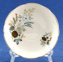 Regency bone china saucer, pattern name unknown. 5-1/2 inches in diameter, scalloped edge, gold trim, excellent condition. This saucer is in excellent condition.
