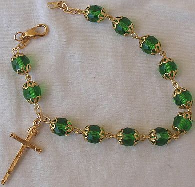 Rosary Bracelet Green gass beads with golden cross