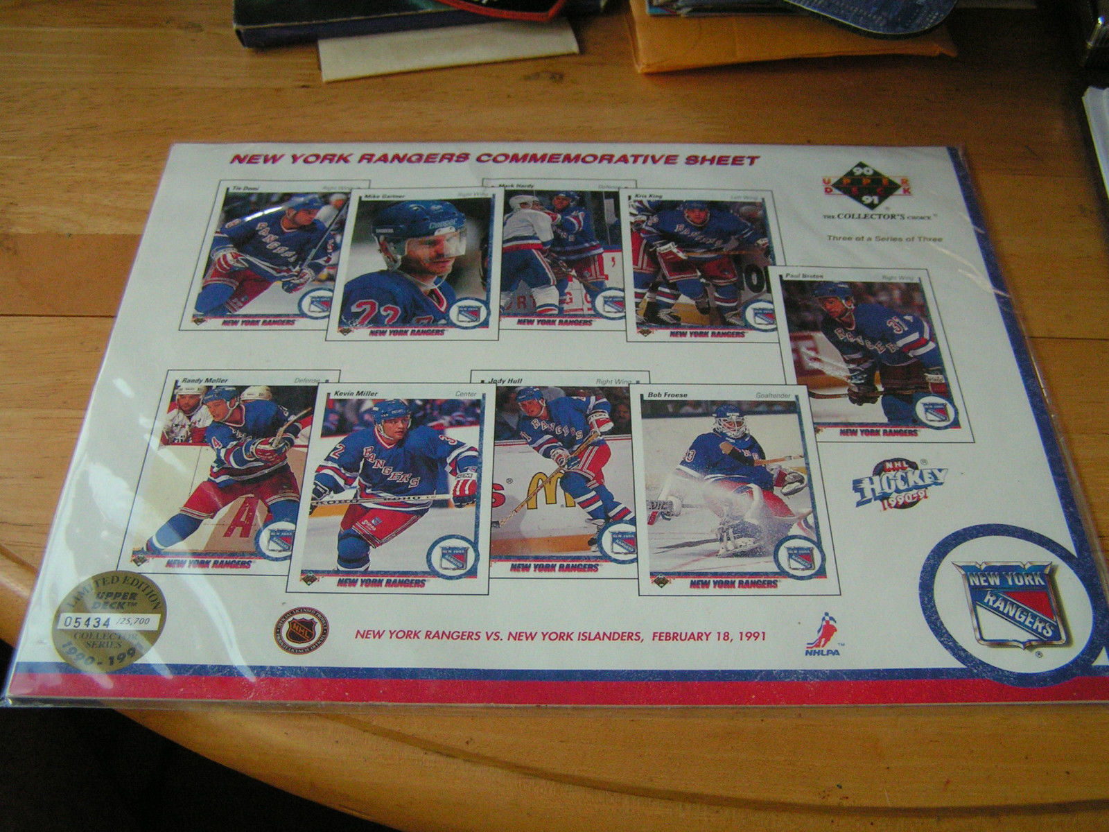NHL 1990/91 NY Rangers UD Commemorative and similar items