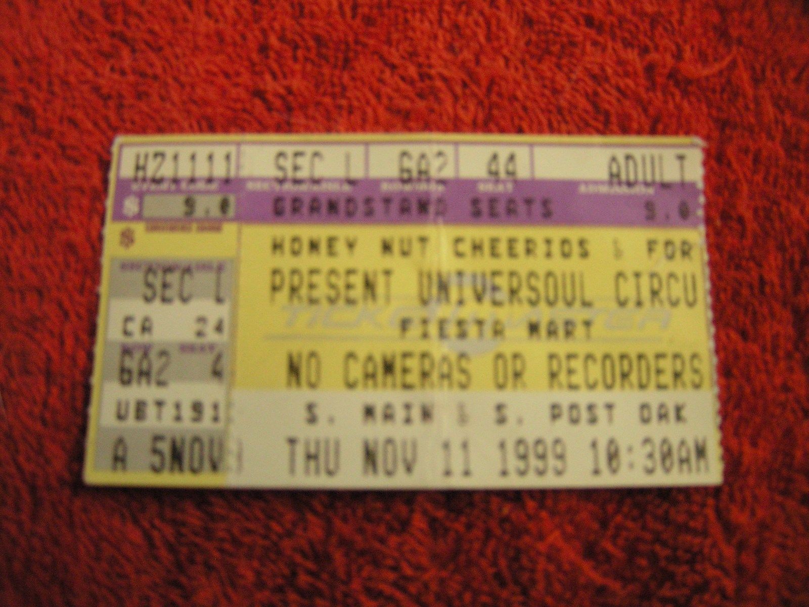 UniverSoul Circus Fiesta Mart Texas 11/11/99 Ticket Stub