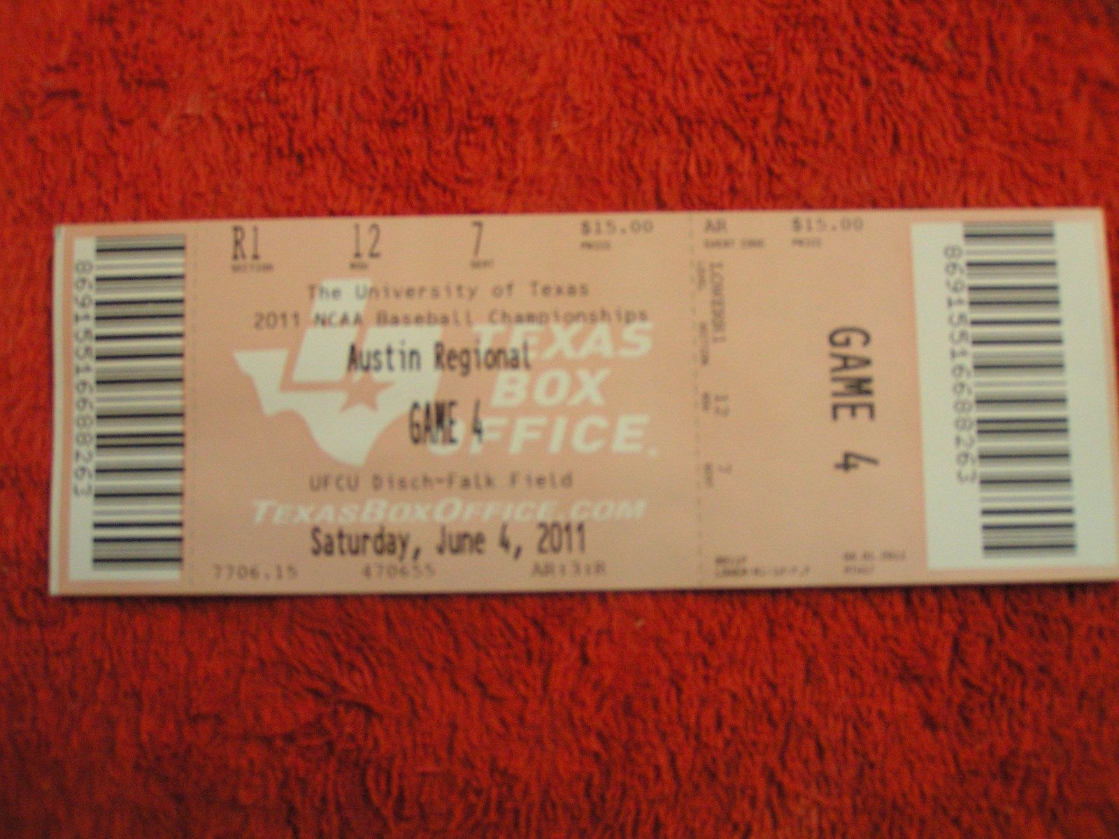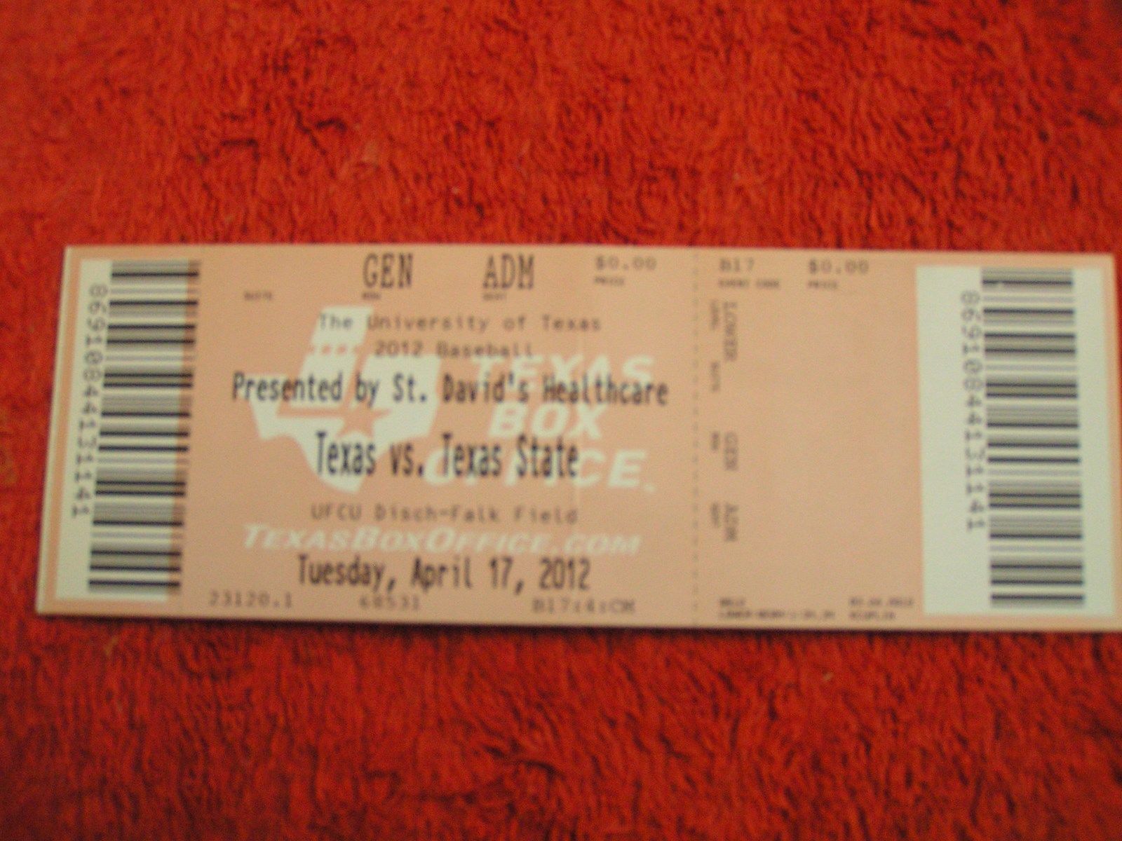 University Of Texas Baseball NCAA Souvenir Collectible Ticket Stub $2.99 Each