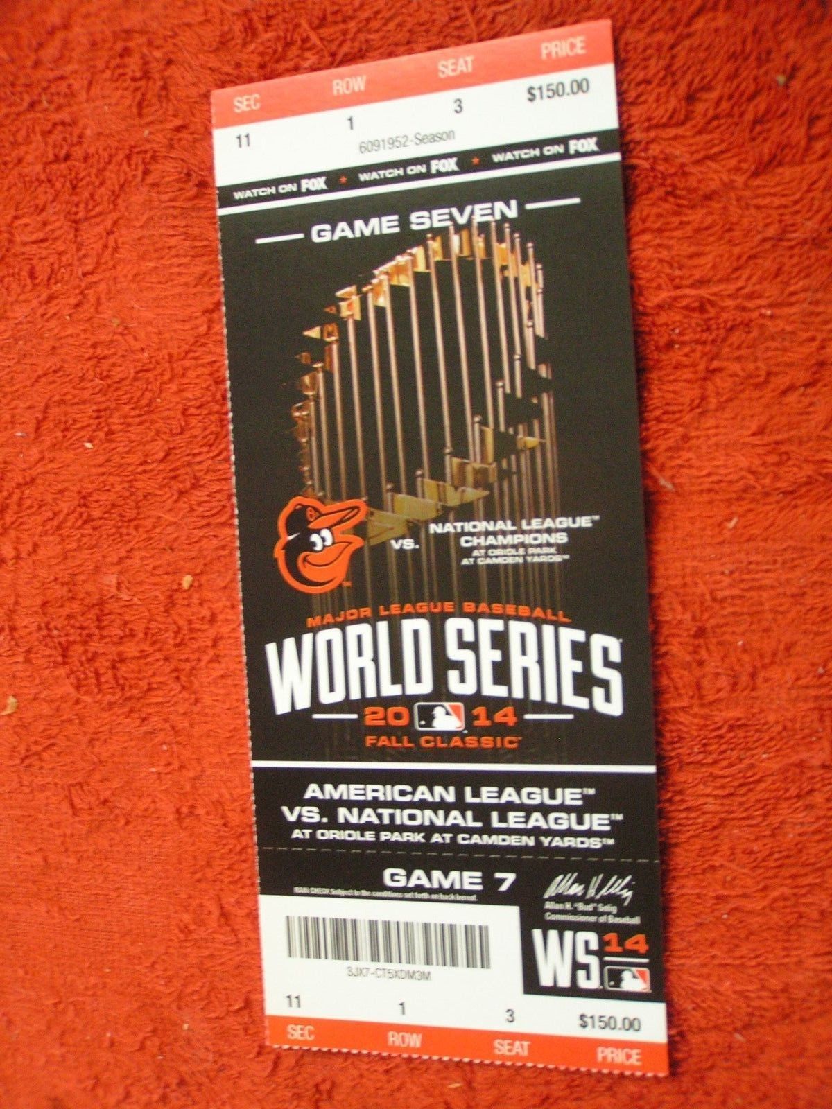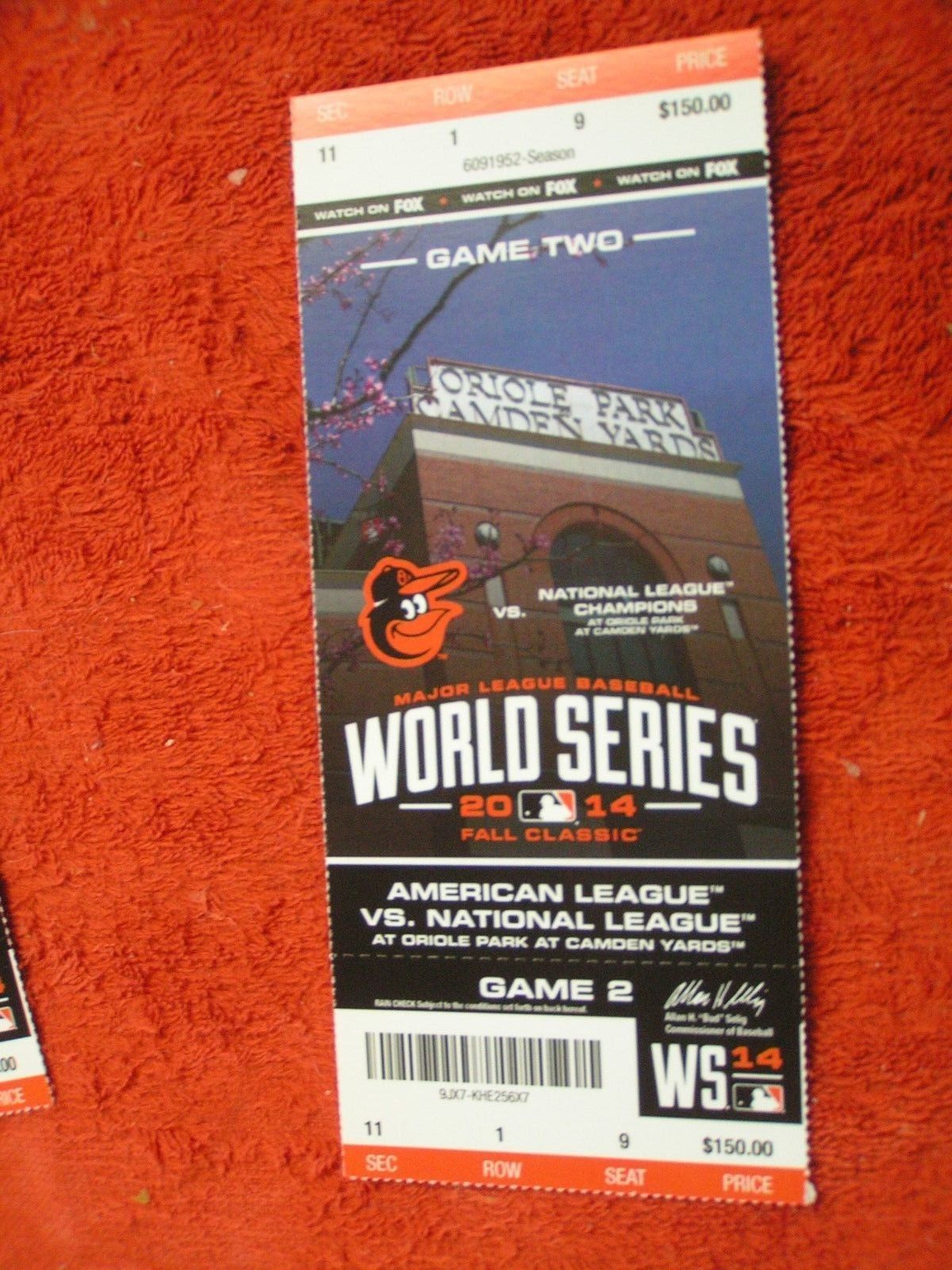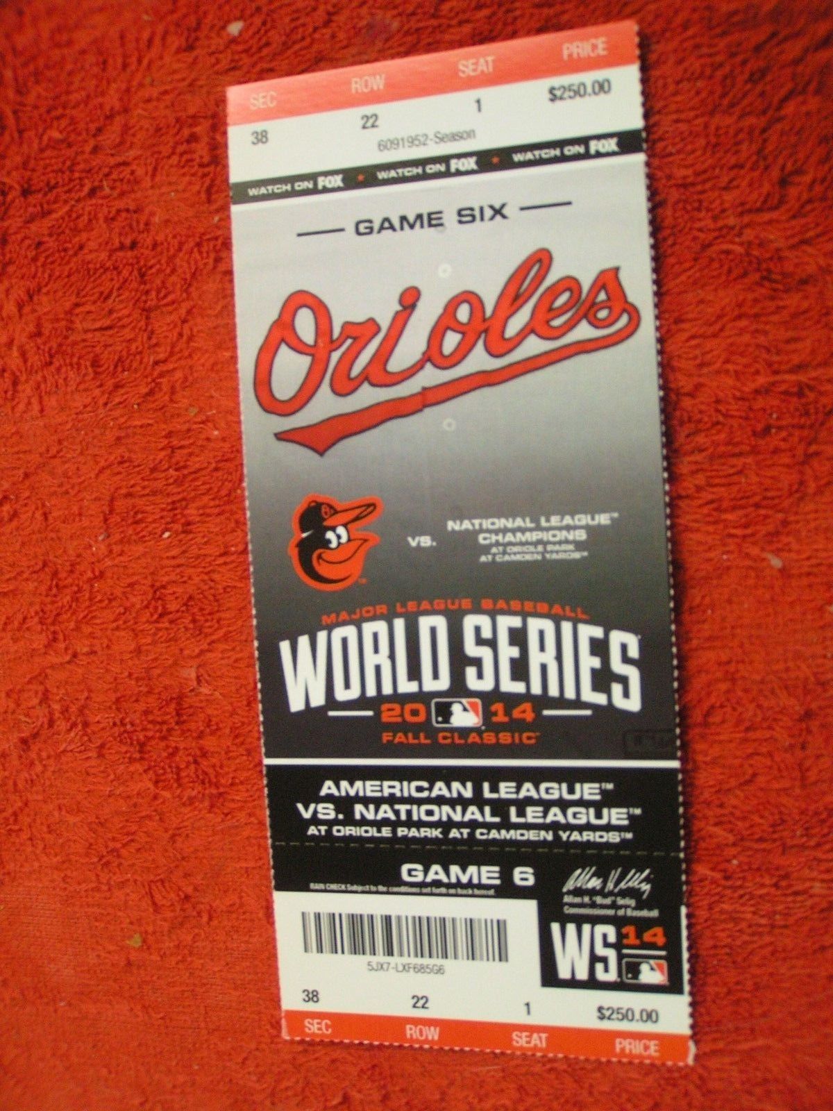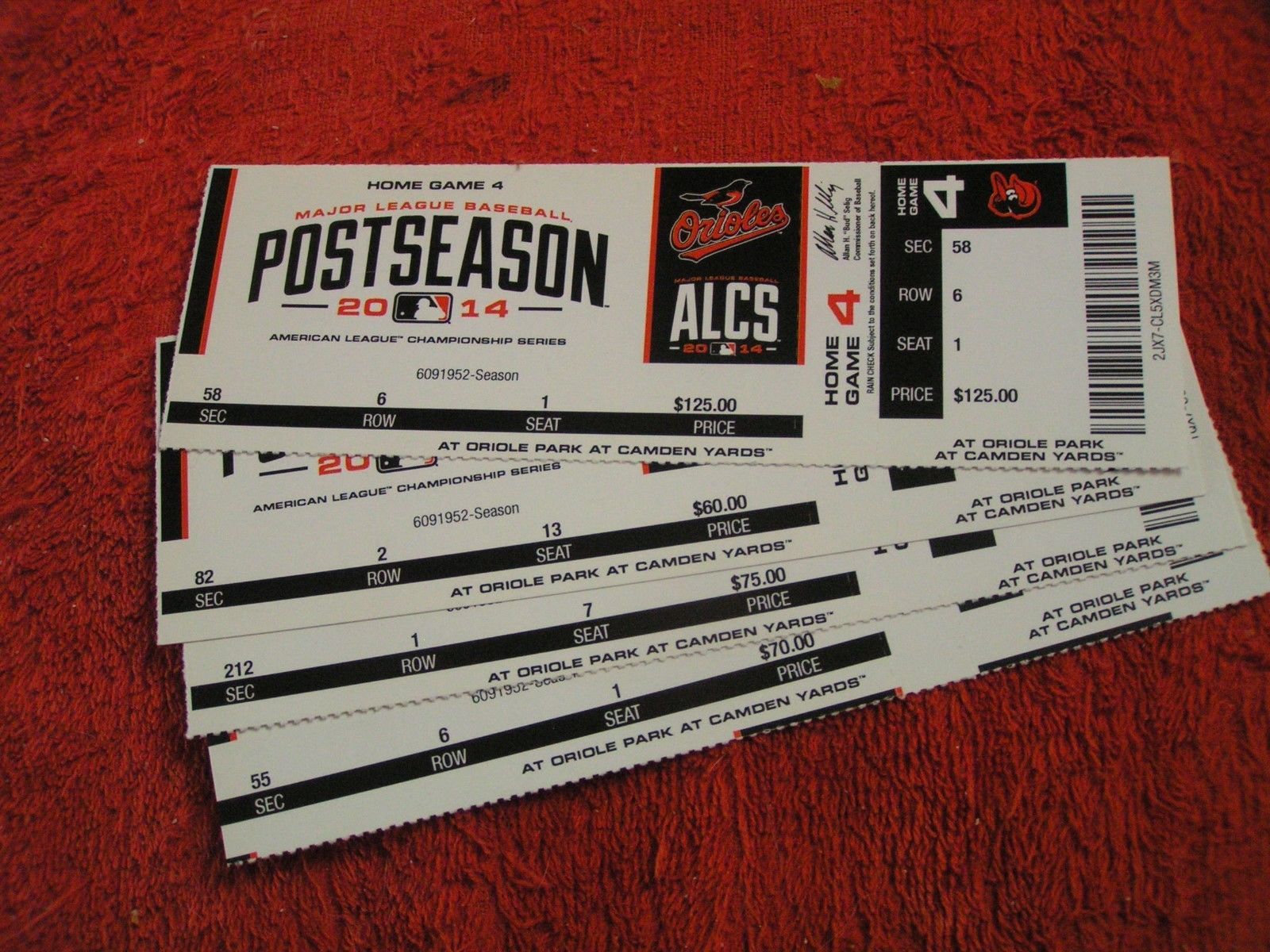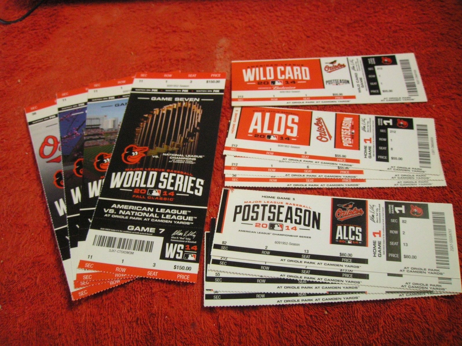 I have the following excellent condition Baltimore Orioles World Series/Playoff Souvenir-Collectible Tickets Available For The 2014 Season:
