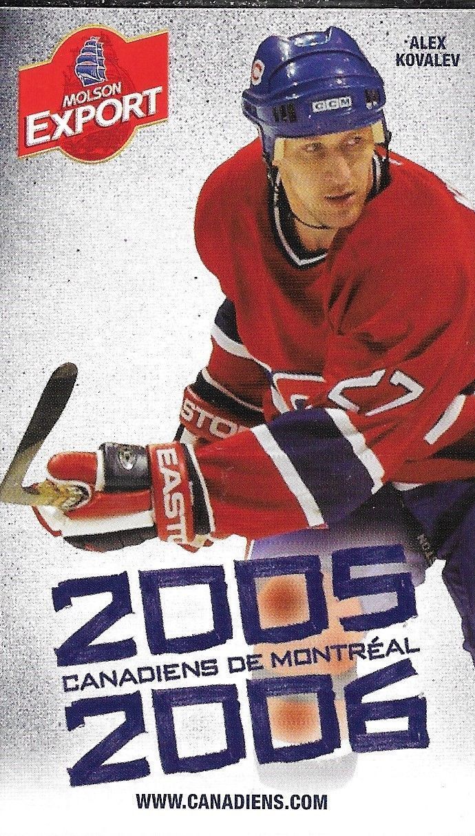 NHL 2005-06 MONTREAL CANADIENS HOCKEY SCHEDULE - #27 ALEXEI KOVALEV MOLSON EXPORT BELL CENTRE
