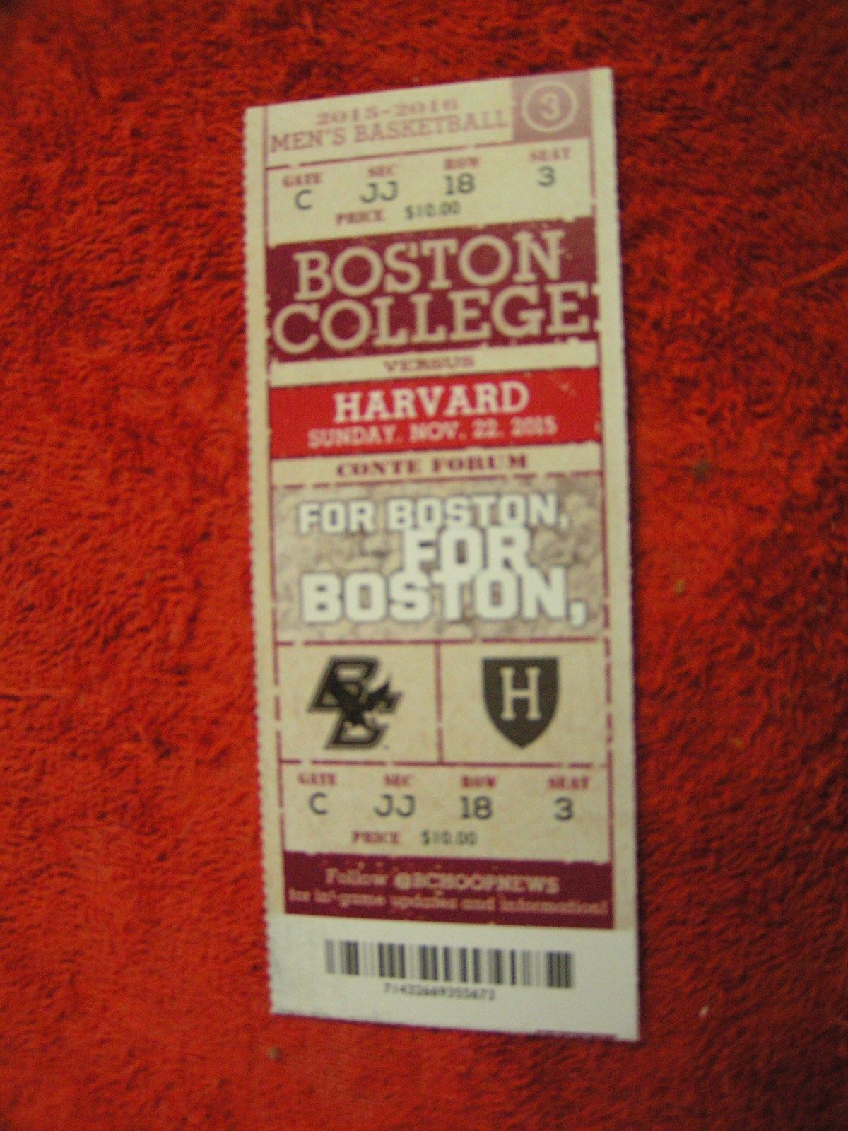 2015-16 Boston College Vs. Maine & Harvard Basketball Ticket Stubs $2.49 Each
