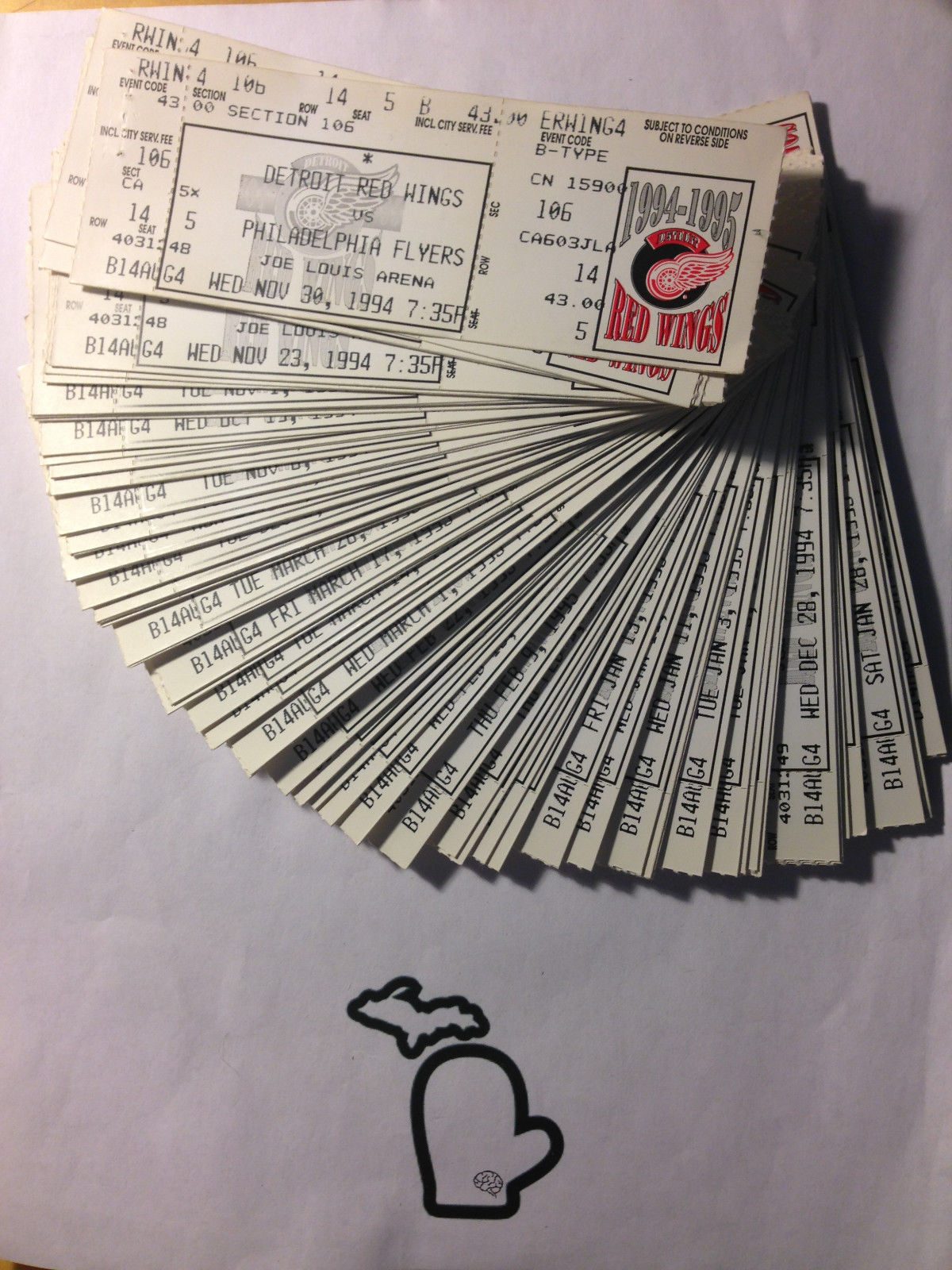 NHL 1994-95 Detroit Red Wings Full Unused Ticket Stubs
